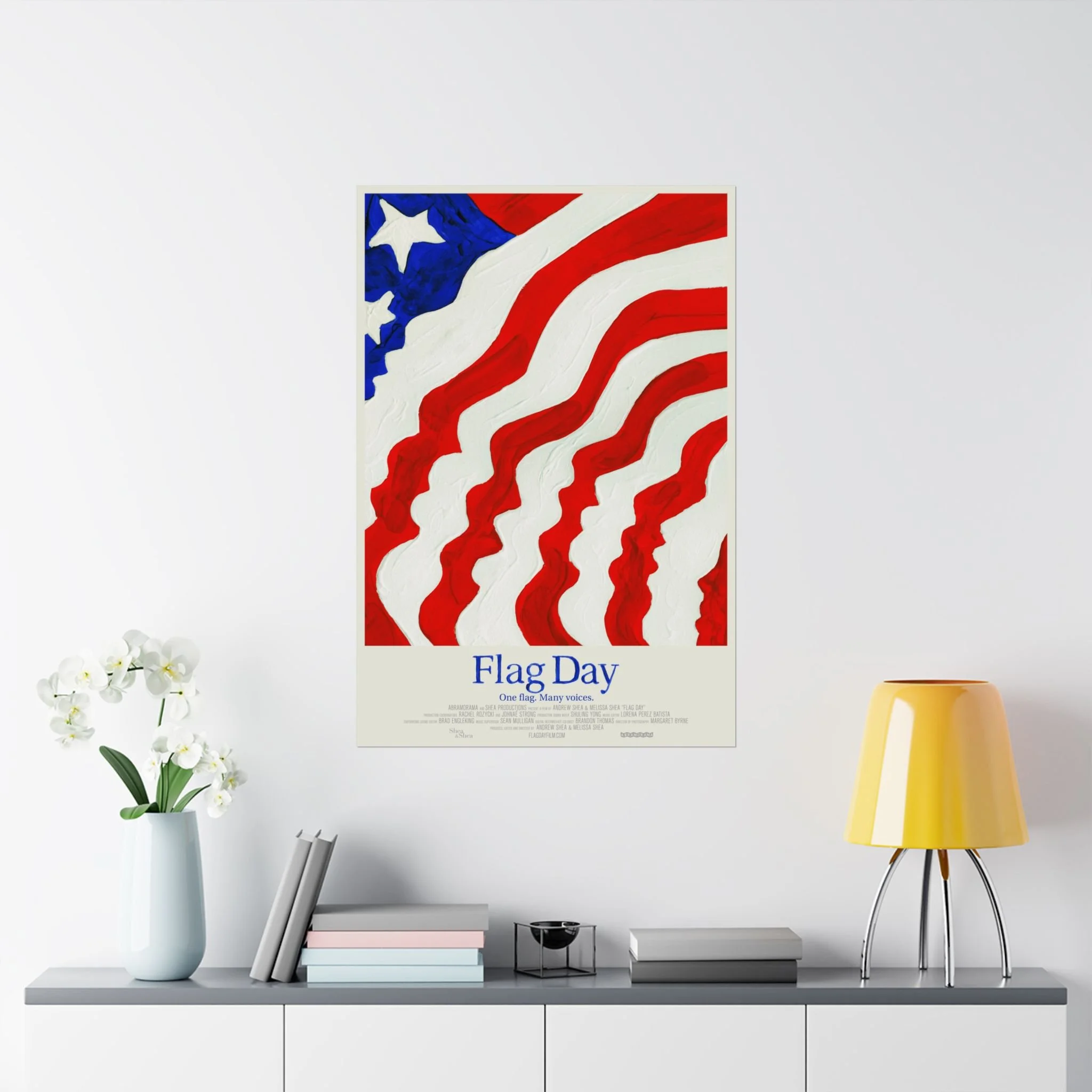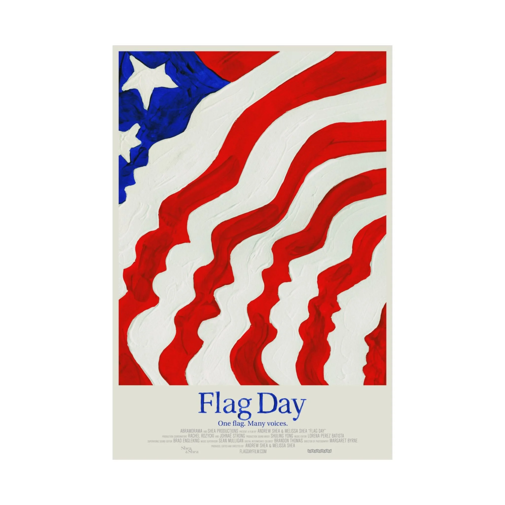 We're proud to share the Flag Day film poster designed and hand-painted by acclaimed designer Akiko Stehrenberger. The key art represents the mutability of the flag - it is what we make of it, divisive when we use it for divisive ends, and unifying when we lend our voice to it. Printed on museum‑grade archival paper with Giclée inks, the image keeps its rich tones and subtle texture without glare thanks to a light‑absorbing matte finish.